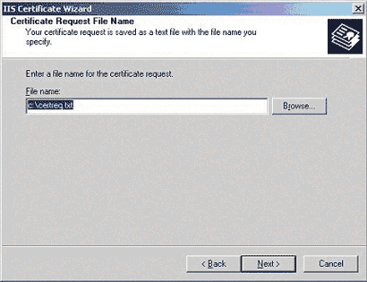 - . The last step is to specify the location of the Certificate Request File, remember where and what you called this as you will need it later.